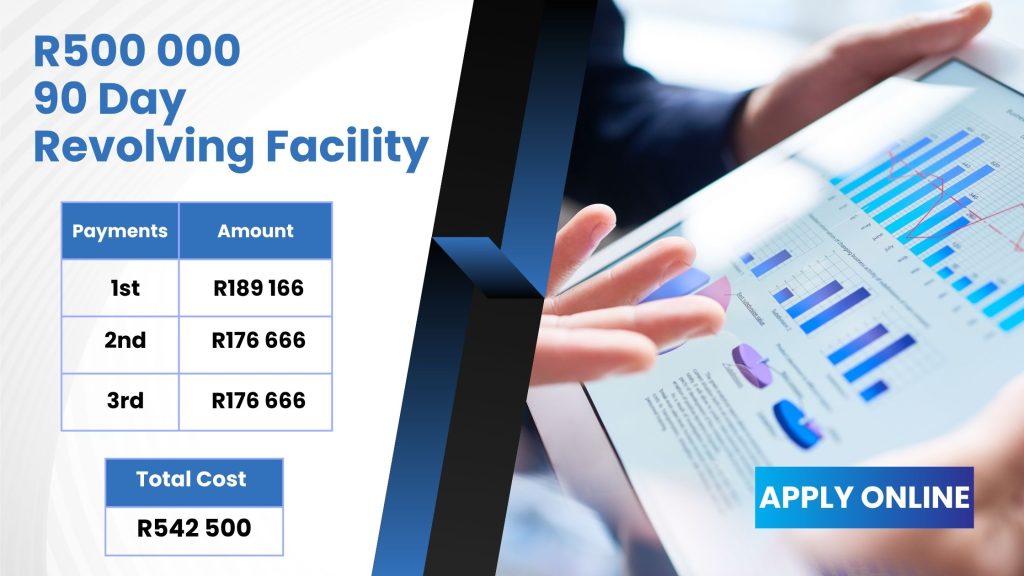 Instead of using its own funds, the business secures a R500 000 revolving facility at a total cost of R42 500 over 90 days.
